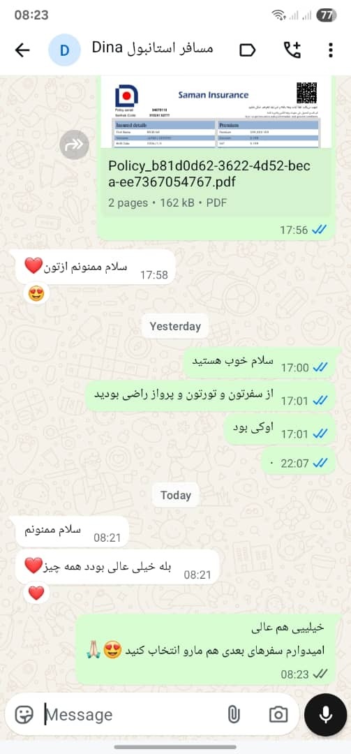 بیمه مسافرتی کامل: برای آرامش و امنیت بیشتر شما، بیمه مسافرتی معتبر برای تمام طول سفر تهیه میشود.